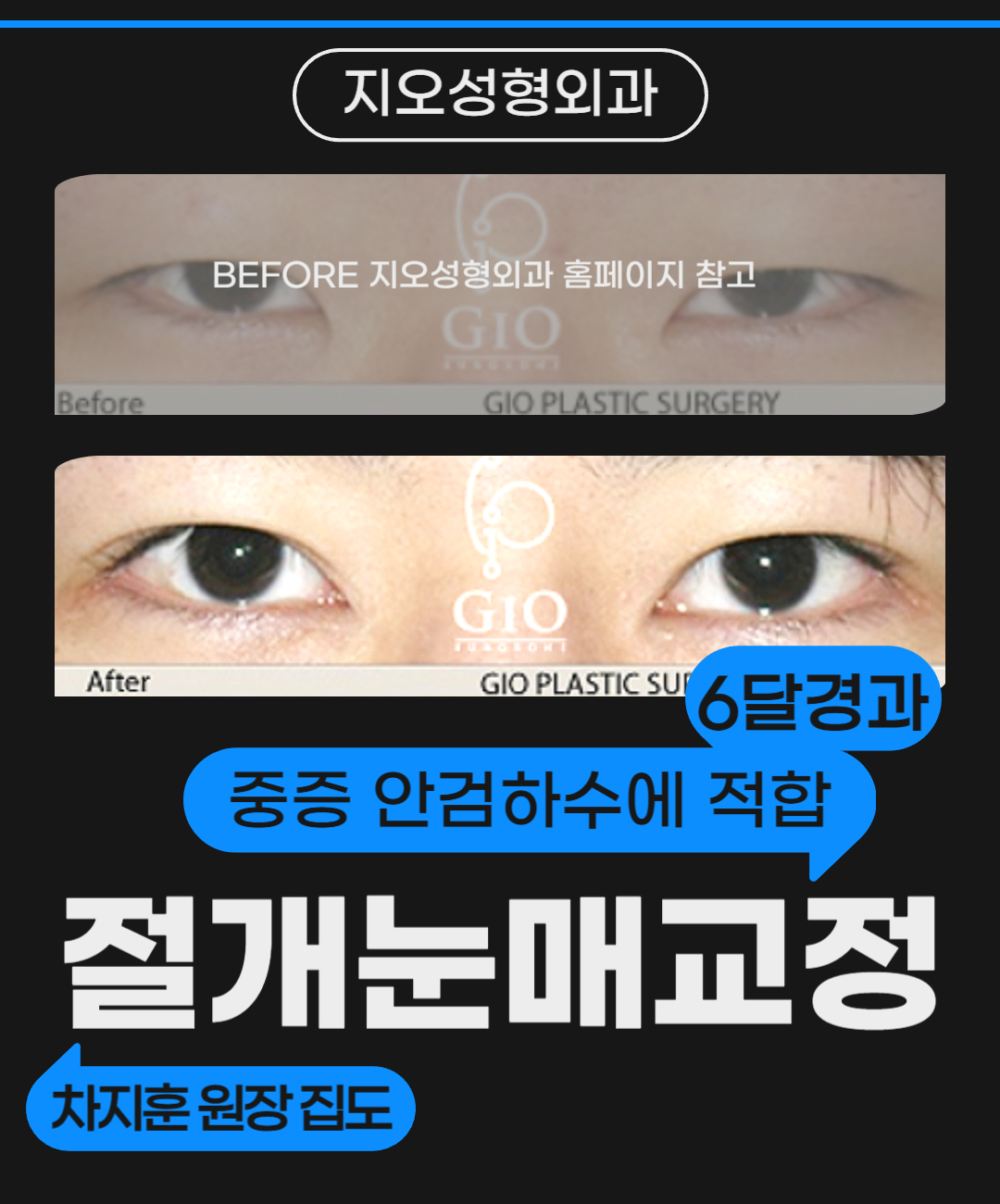 지오에서 집도된 절개눈매교정후기 사진들을 보면